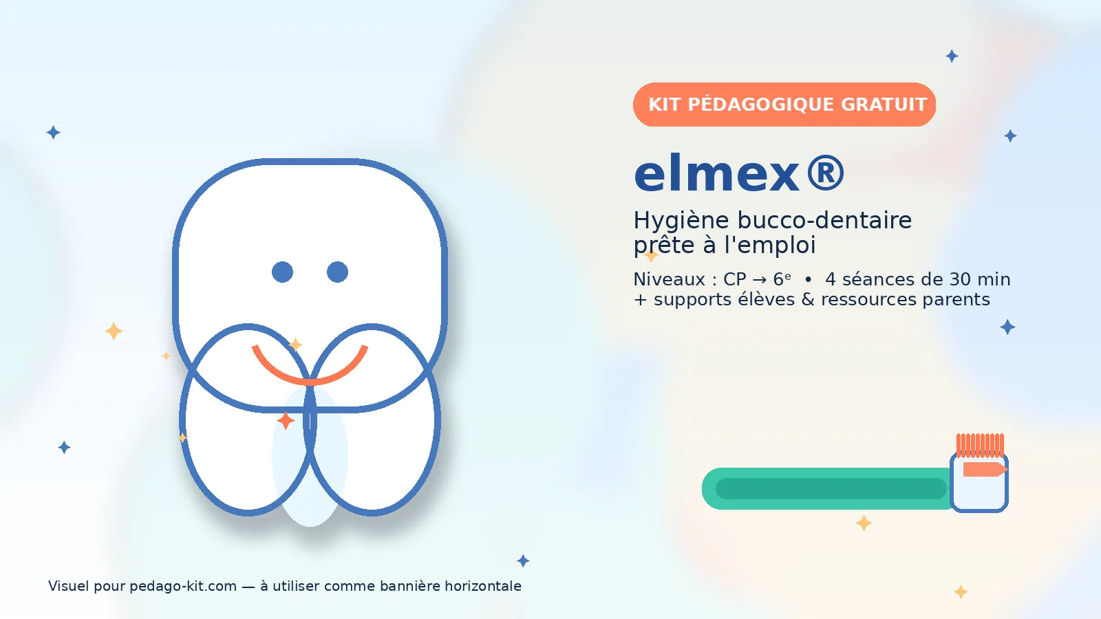 Le kit pédagogique elmex® “Des dents saines pour des enfants heureux” est un programme d’éducation à la santé bucco-dentaire